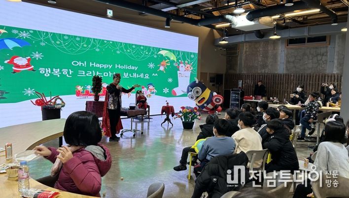 이번 행사는 마술공연과 함께 ‘행복한 크리스마스’라는 주제로 소프라노의 캐롤 공연, 하모니카 연주, 레크리에이션 등으로 구성됐으며 목포 9미(味) 애니매이션 상영과 퀴즈, 시식 이벤트 등도 진행됐다.