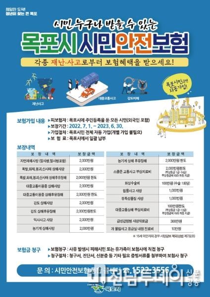 전남투데이 김호정 기자 | 목포시가 올해 시민안전보험의 내실은 높이고, 혜택은 확대했다.