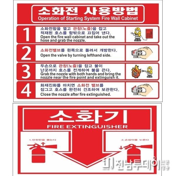 전남투데이 김호정 기자 | 목포소방서는 지역 사회에 다문화 가정 구성원과 외국인의 비율이 높아짐에 따라 화재 시 사용하는 옥내소화전의 사용설명서에 한글과 외국어를 동시 표기할 것을 당부한다고 5일 밝혔다.