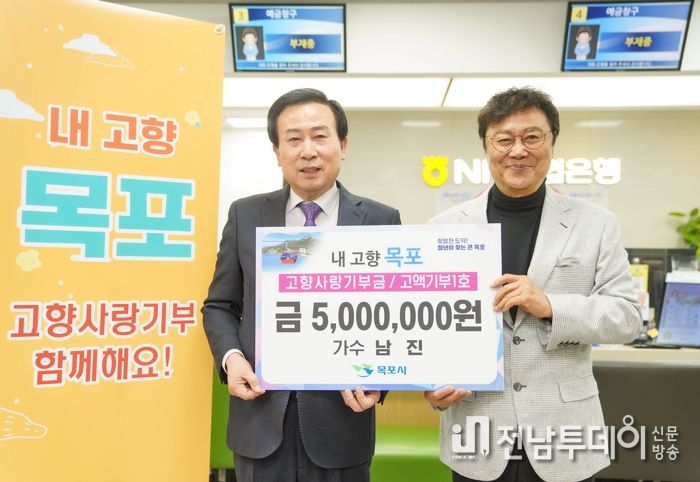전라남도 고향사랑 홍보대사이기도 한 남진씨는 고향 목포에 대한 깊은 애정을 드러내며, 지난 16일 목포에 고향사랑기부금 연간 기부 최고 금액인 500만 원을 전달했다.