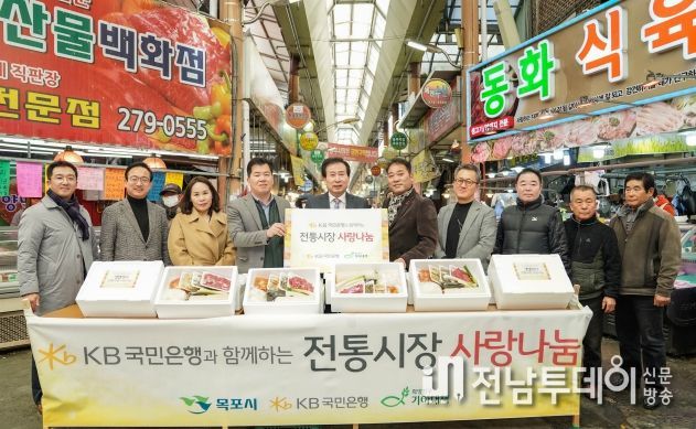 전남투데이 김호정 기자 | 목포시는 지난 14일 KB국민은행·희망친구 기아대책과 함께 동부시장 상인회와 연계한 전통시장 사랑나눔 행사를 진행했다고 밝혔다.