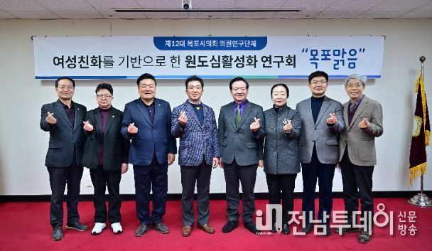 전남투데이 김호정 기자 | 목포시의회 의원연구단체 “목포맑음”(대표의원 박효상)은 2월 16일 오전 목포시의회 소회의실에서 “여성친화를 기반으로 한 원도심 활성화” 주제로 시의원 8명이 참석하여 간담회를 개최했다..