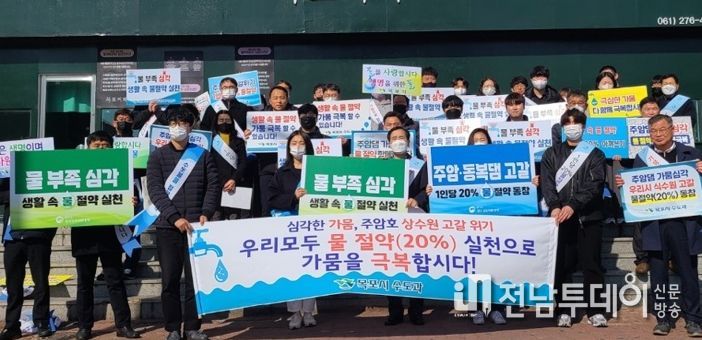 이에 시는 장기 가뭄 극복을 위해 지난 3일 목포종합버스터미널에서 상동행정복지센터 주변까지 가두 캠페인을 진행하며 시민들의 생활 속 물 절약 20% 실천을 독려했다.