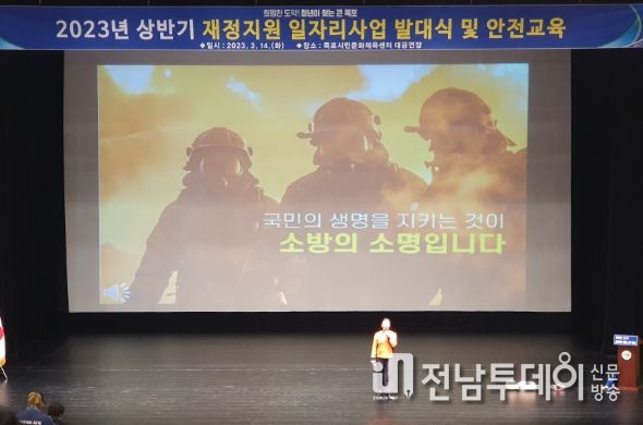 전남투데이 김호정 기자 | 목포소방서는 지난 14일 목포시 시민문화체육센터에서 목포시 공공근로자 및 관계인 1,000여명을 대상으로 소방안전교육을 실시했다고 밝혔다.