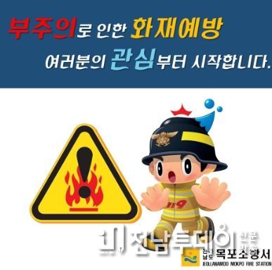 전남투데이 김호정 기자 | 목포소방서는 화재위험이 증가하는 봄철을 맞이해 부주의로 인한 화재를 예방하고자 부주의 화재예방 캠페인 추진에 나선다고 밝혔다.