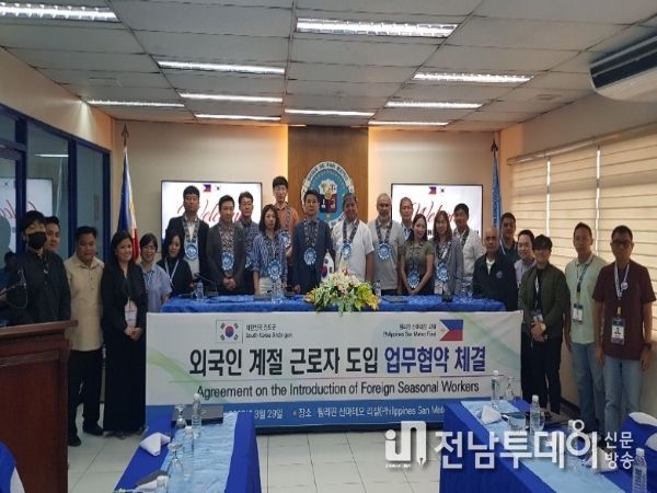 전남투데이 김완규 기자 | 진도군이 농어촌 인구 감소와 고령화로 인한 일손 부족 문제 해결을 위해 필리핀 리잘주 산마테오시와 계절근로자 도입을 위한 MOU를 체결했다.