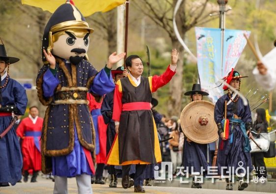 이들은 일제강점기의 강인한 정신과 목포 수군의 역사를 담아 내며 시민 화합 메시지를 전했다. 또한, 제104회 전국체전과 제43회 전국장애인체전 마스코트가 행렬에 참여해 양대 체전의 성공적인 개최를 기원했다.