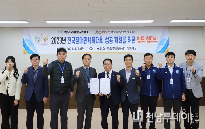 전남투데이 김호정 기자 | 목포국제축구센터와 전라남도장애인체육회는 지난 7일 목포국제축구센터에서 2023년 제43회 전국장애인체육대회 성공개최 지원체계 구축을 위한 업무협약식을 체결했다.