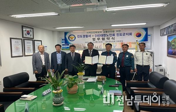 전남투데이 김완규 기자 | 전남 진도경찰서는 지난 4월13일 10:00 (사)대한노인회 진도군지회 노인회장실에서 노인회장과'지역안전확보와 교통안전을 위한 업무협약'을 체결했다.