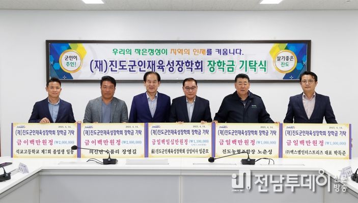장학금을 기탁한 군민과 동문들은 “진도의 미래를 이끌어 갈 인재 육성을 위한 작은 보탬이 됐으면 한다”며 “앞으로도 많은 학생들이 학업에 전념할 수 있도록 장학금 기탁을 계속하겠다”고 말했다.