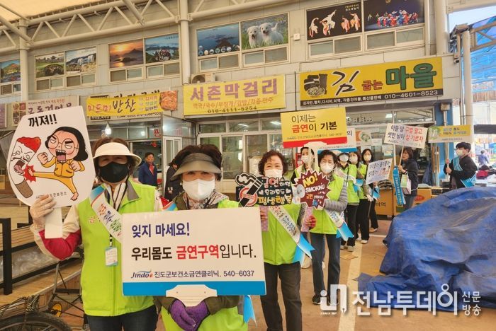 또 쾌적한 정주환경을 통한 살기좋은 진도 만들기를 위해 진도읍 5일 시장에서 간접흡연 피해 홍보 캠페인을 펼쳤다.