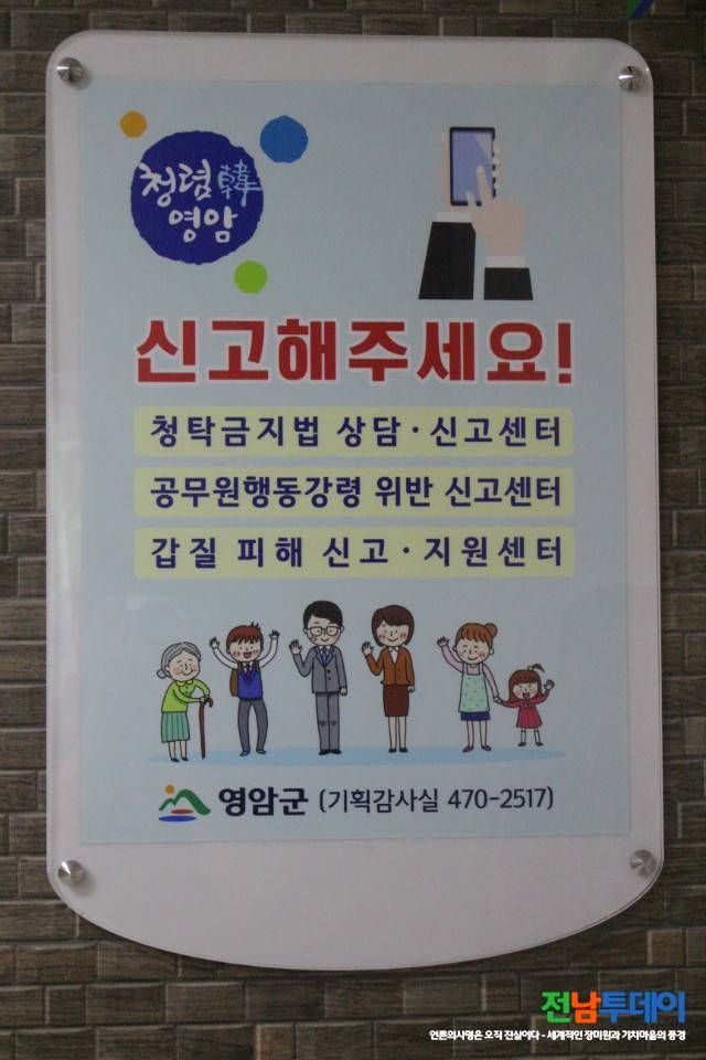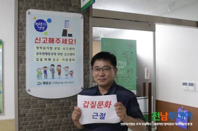 갑질 피해 신고와 접수는 영암군청 홈페이지 내 갑질피해신고센터 방, 내부 직원 간 갑질은 군청 내부 사이트인 새올행정시스템 게시판에 신설된 ‘갑질 및 부패비리익명신고방’을 통해 제보할 수 있다.