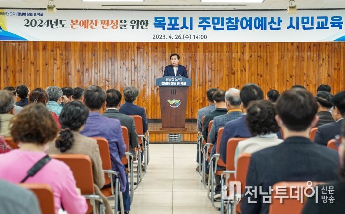 시는 26일 목포시청에서 주민참여예산에 대한 시민의 이해를 돕기 위해 ‘2024년 본예산 편성을 위한 주민참여예산 교육’을 실시했다.