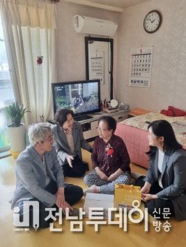 전남투데이 김호정 기자 | 원산동장 및 직원들은 지난 3일 어버이날을 맞아 홀로 생활하는 어르신 가정을 방문해 어버이날 맞이 물품을 전달하고 안부를 살폈다.
