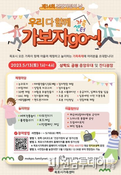 전남투데이 김호정 기자 | 목포시가족센터가 제14회 건강 가정의 날 가족 축제인‘우리 다 함께 가보자 go~!’를 개최한다.