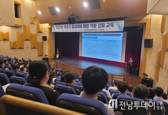 전남투데이 김호정 기자 | 목포시가 지난 10일 목포시민문화체육센터 소공연장에서, 중대시민재해 및 중대산업재해 관련 부서장 및 실무 담당자 200여명을 대상으로 2023년 중대재해예방 역량 강화 교육을 실시했다.