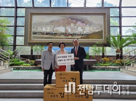 또한, (사)한국김산업연합회는 제2회 전남 으뜸 김 품평회에 출품된 김 중 평가시료로 사용하고 남은 김(마른김 80속, 시가 100만 원 상당)을 목포복지재단을 통해 기탁했으며, 매주 화요일 저소득 어르신을 대상으로 점심 식사를 제공하고 있는 참!좋은 사랑의 밥차 부식으로 사용할 계획이다.