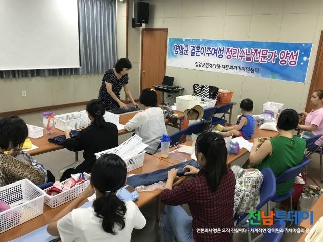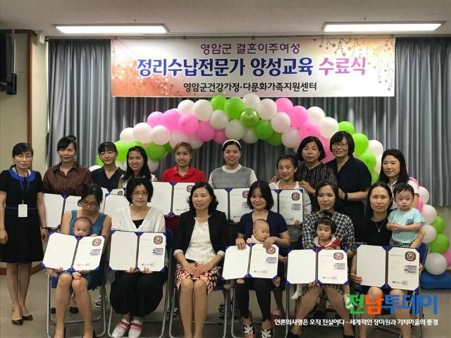 [전남투데이 김연자 기자] 영암군은 지난 30일 영암군 결혼이주여성정리수납전문가 과정 수료식을 개최하였다. 영암군건강가정다문화가족지원센터 건강가정다문화가족지원센터에서 주관으로 7월 31일부터 8월 17일까지 6일간 “결혼이주여성 정리수납 전문가 양성교육”과정을 실시하여 12명이 자격증을 취득하는 성과를 올렸다.