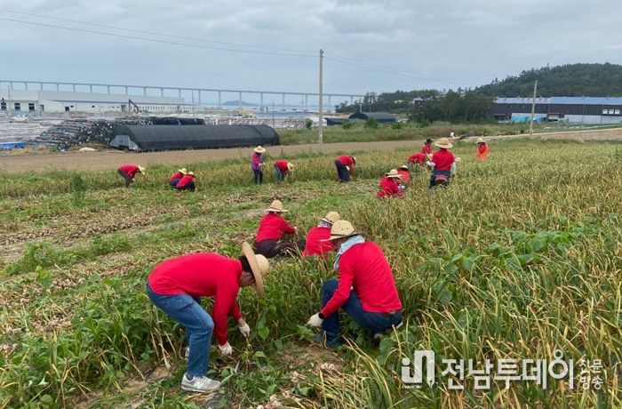 또한 북항동 자생조직연합회에서도 장산면 농가에서 양파 수확을 돕고, 장산면 내 경로당을 방문해 식사를 대접하는 등 뜻깊은 시간을 가졌다. 또한 오늘(1일) 연동 통장협의회가 암태면을 찾아 마늘 수확을 돕는다.