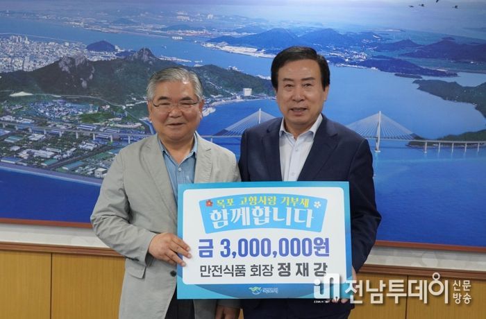 전남투데이 김호정 기자 | 목포시는 만전식품 정재강 회장이 고향사랑기부금 300만 원을 기탁했다고 3일 밝혔다.