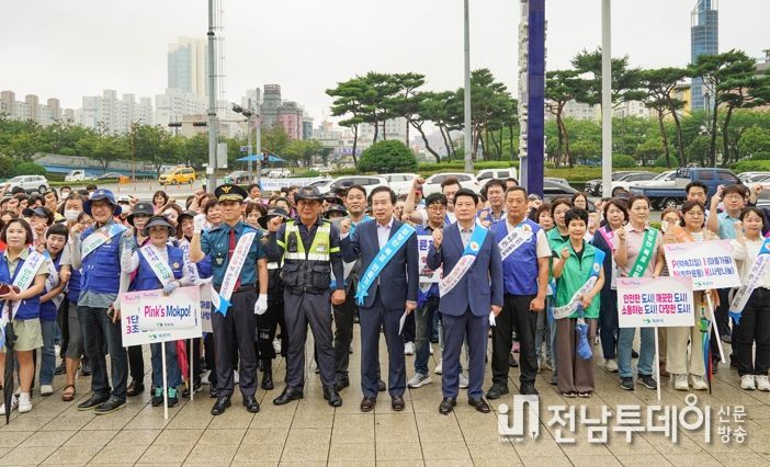 전남투데이 김호정 기자 | 목포시와 목포경찰서는 12일, 목포시 19개 주요 거점 교차로에서 전국체전 성공개최를 위한 대규모 방문객 맞이 교통질서 지키기 캠페인을 추진했다.