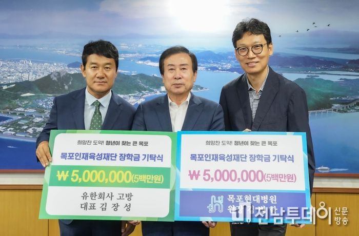 전남투데이 김호정 기자 | 유한회사 고방과 목포현대병원이 지난 11일 목포인재육성재단에 우수인재 양성을 위한 장학기금을 각 500만원씩, 총 1천만원을 기탁했다.