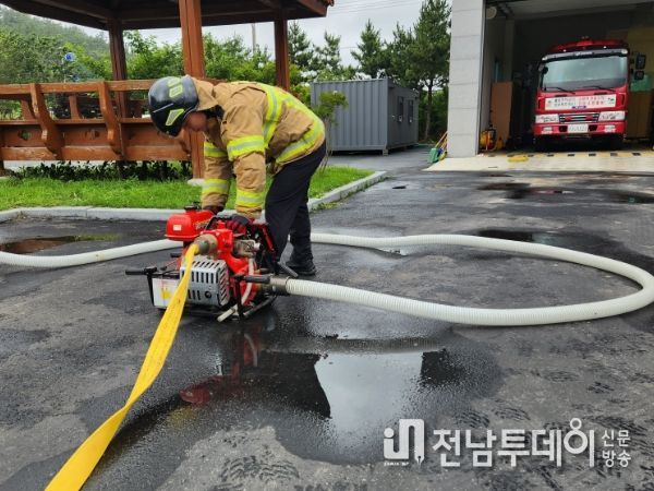 전남투데이 김완규 기자 | 진도소방서 임회119안전센터는 최근 장마전선이 강해지고 집중호우가 지속됨에 따라 풍수해 대응 능력을 강화하기 위한 수방장비 일제점검을 실시했다고 밝혔다.