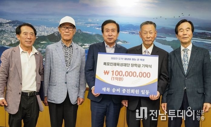 전남투데이 김호정 기자 | 재목 송씨 종친회가 12일 목포인재육성재단에 장학기금 1억 원을 기탁했다.