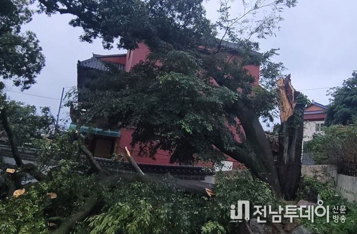 전남투데이 김완규 기자 | 최근 전국적으로 많은 장맛비가 쏟아지면서 천둥․번개를 동반하는 날이 많은데, 12일 새벽 진도관내에서는 낙뢰로 고목이 부러져 주차된 차량이 손상되는 일이 발생했다. 다행이 인명피해는 없었으나 낙뢰 예보때는 큰 나무밑 주차는 피해야 하겠다.