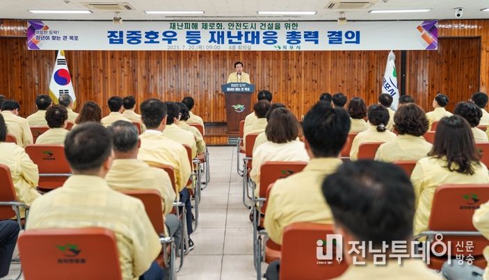이날 시는 재난피해 제로화와 안전도시 목포 건설을 위해 전 직원이 집중호우 전국 피해사항과 재난 대응 절차, 집중호우에 따른 대처사항에 대해 영상을 시청했다.
