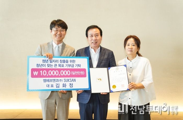 전남투데이 김호정 기자 | 목포시는 주식회사 엠에프앤코가 청년이 찾는 큰 목포를 위한 청년창업과 일자리 지원사업을 위해 1,000만 원을 기탁했다고 밝혔다.