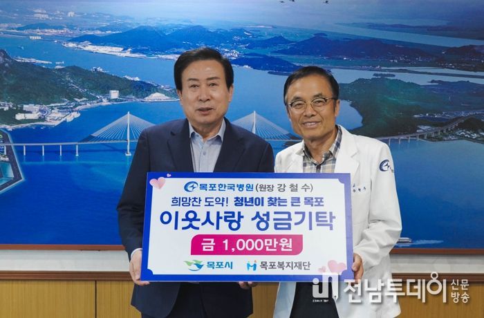 전남투데이 김호정 기자 | 목포한국병원 강철수 원장이 지난 25일 이웃사랑 성금 1,000만원을 목포복지재단에 기탁했다.