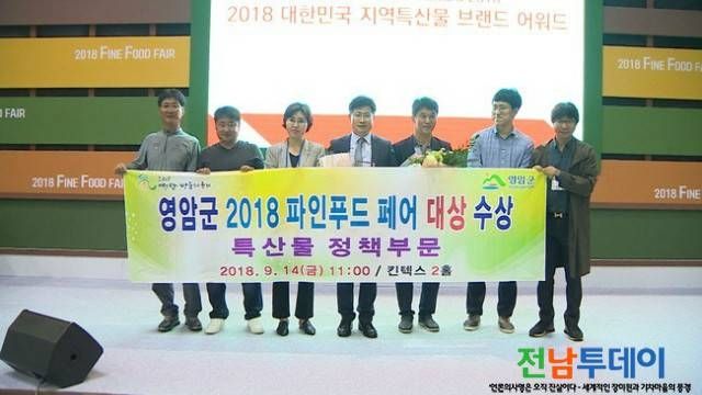 [전남투데이 김연자 기자] 영암군(전동평 군수)은 지난 14일부터 16일까지 일산킨텍스에서 열린 2018 대한민국 지역특산물 브랜드 어워드에서 “특산물정책부문”영예의 대상을 수상했다.