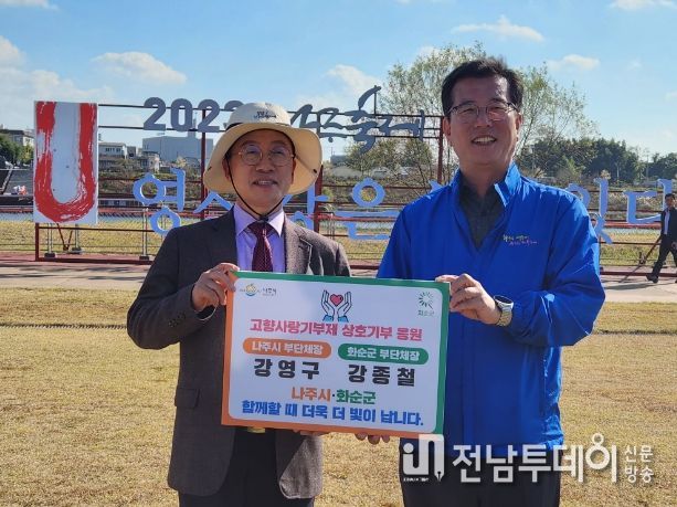 나주시는 나주시 강영구 부시장과 화순군 강종철 부군수가 지역 축제 현장에 교차 방문해 고향사랑 상호 기부에 동참했다고 3일 밝혔다.