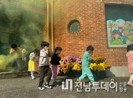 이후 본격적인 실제 훈련을 실시해 “불이야” 하는 소리와 함께 원생은 교사의 안내에 따라 신속하고 원활하게 건물 밖으로 대피했다.
