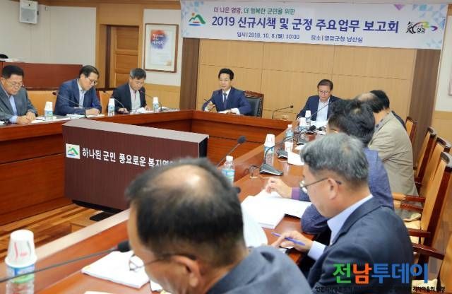 [전남투데이 김연자 기자] 영암군은 전동평 군수 주재로 지난 8일,‘내년도 신규시책 및 주요업무 보고회’를 실과소장과 읍면장 등 40명이 참석한 가운데 개최했다.