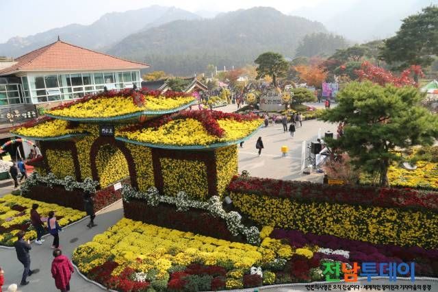 또한 공연장과 산책로 주변에는 다양한 형태의 국화 포토존이 조성되고 펜션 뒤와 전시공간이 확대된 도백교 주변에는 사슴, 돼지 등 동물 캐릭터와 케로로, 뿡뿡이 등 만화 캐릭터가 설치되어 어린아이들에게 큰 인기가 있을 것으로 예상된다. 아울러 기찬랜드 입구부터 관람로를 따라 국화 3만여점이 배치․식재되는 등 행사장 전체가 국화로 뒤덮혀 관람객들은 깊어가는 가을 화려한 오색국향에 흠뻑 취하게 될 것이다