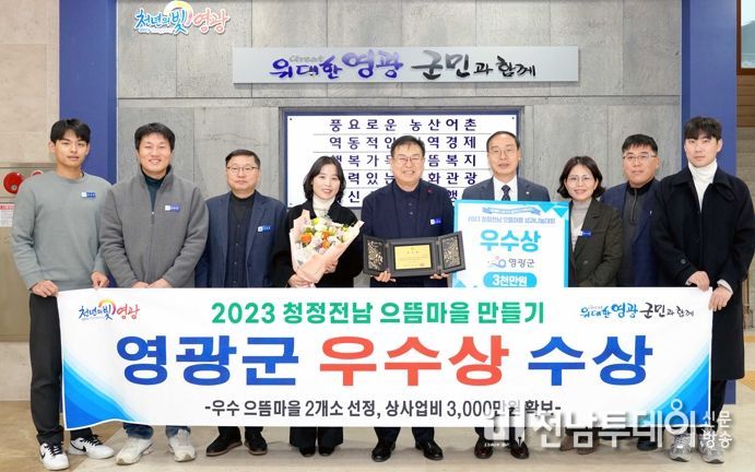 전남투데이 박세훈 기자 | 영광군은 지난 18일 전남도청 김대중 강당에서 열린 '2023년 청정전남 으뜸마을 성과나눔대회'에서 2023년 청정전남 으뜸마을 만들기 우수시군 종합평가 2년 연속 ‘우수상’ 수상과 함께 시상금 3천만 원을 받았다고 밝혔다.