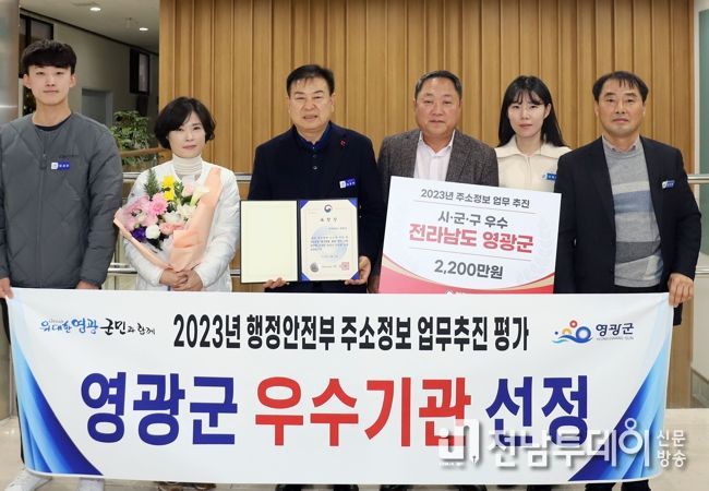 전남투데이 박세훈 기자 | 영광군이 지난 14일 행정안전부 주관 ‘2023년 주소정보 업무추진 평가’에서 우수기관으로 선정되는 쾌거를 거뒀으며, 부상으로 특별교부세 2,200만 원을 수상했다고 밝혔다.