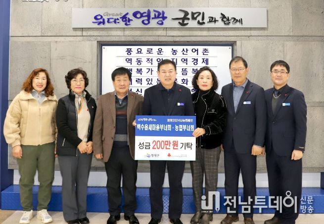 전남투데이 박세훈 기자 | 지난 5일 백수읍 새마을부녀회와 백수농협부녀회는 2024년 청룡의 해를 맞아 지역의 어려운 이웃을 위해 ‘2024나눔캠페인’에 성금 200만 원을 기탁했다.