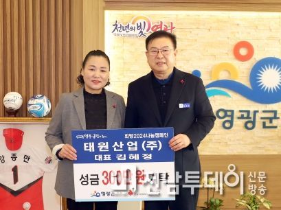 전남투데이 박세훈 기자 | 지난 10일 태원산업에서는 영광군에 희망2024나눔캠페인 성금 300만 원을 기탁했다.