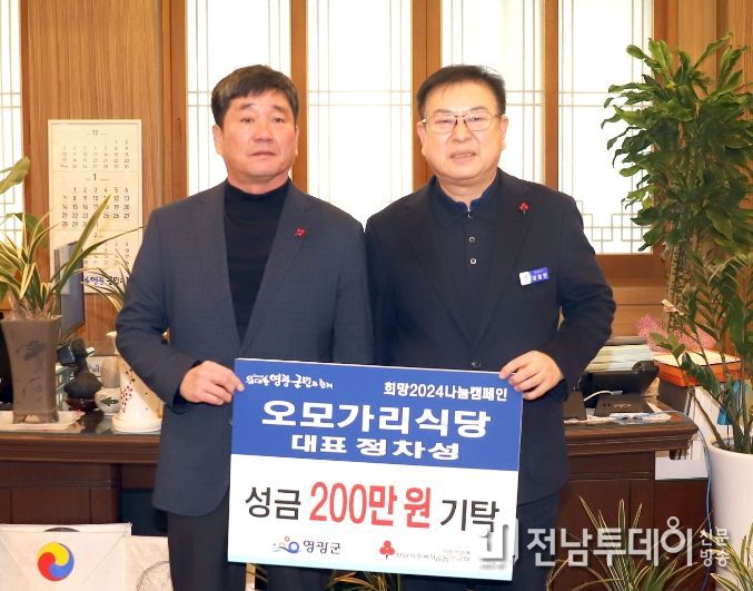 전남투데이 박세훈 기자 | 지난 11일 오목가리 식당(대표 정차성)에서는 영광군에 ‘희망2024나눔캠페인’ 성금 200만 원을 기탁했다.