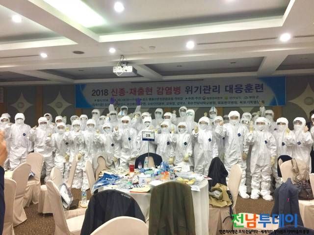 이번 훈련에는 질병관리본부와 시·군 감염병부서, 보건환경연구원, 국가지정입원치료병원, 의료기관, 교육청, 소방안전본부, 검역소 등 유관기관 관계자 150여명이 참석하여 신종감염병 발생 시 유관기관 간 협조체제를 점검하고 대응역량을 강화하는 내용으로 교육을 실시하였다.