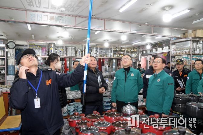 이날 점검에는 이한경 행정안전부 재난안전관리본부장, 고광완 광주시 행정부시장이 참여해 소방, 전기, 가스 분야 등 시설물과 양동시장 화재안전대책을 점검했다.