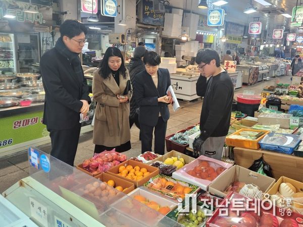 전남투데이 김완규 기자 | 전라남도는 행정안전부, 목포시와 합동으로 ‘전통시장을 방문해 설 대비 성수품 가격 동향을 지난 30일 점검하고, 평균가격 이하로 우수한 서비스를 제공하는 착한가격업소에서 애로사항을 청취했다고 밝혔다.