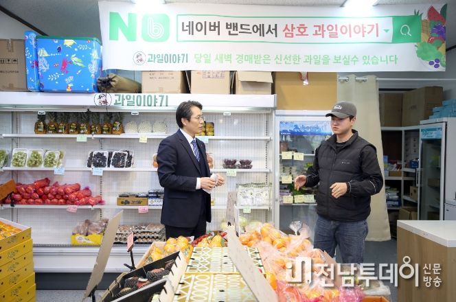 지난 1일 오후 우승희 영암군수는, 과일이야기 삼호점을 찾아, 한 대표와 창업 경험과 지역 농산물 가공·유통 등을 놓고 이야기를 나눴다.