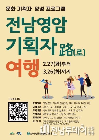 전남투데이 박상훈 기자 | (재)영암문화관광재단은 지역 문화 활동가를 발굴하기 위해 문화기획자 양성 프로그램‘기획자路(로) 여행’에 참가할 예비 기획자를 오는 22일까지 모집한다고 밝혔다.
