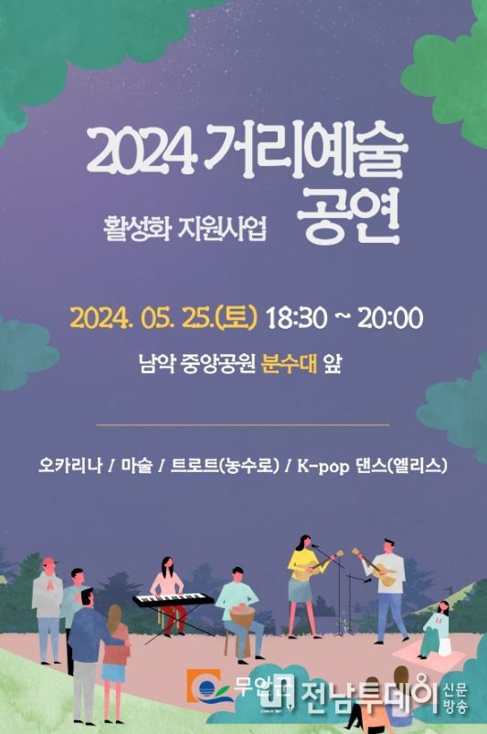 전남투데이 안철우 기자 | 전남 무안군은 오는 25일 토요일 18시 30분 남악 중앙공원 일원에서 ‘2024년 거리예술 활성화 지원사업’의 일환으로 문화공연 행사를 진행한다.
