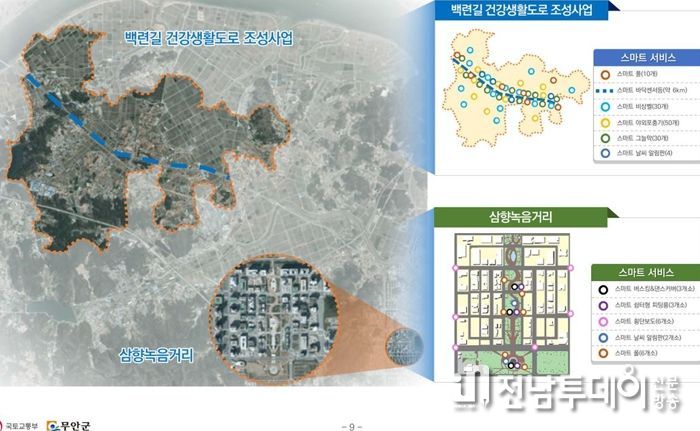 이번 공모사업에 무안군은 일로읍과 몽탄면, 삼향읍(신도심)에 조성 중인 산책로를 대상지로 선정하고, ‘교통문제, 군민 건강증진, 지역경제 활성화’에 대한 방안을 제시했다.