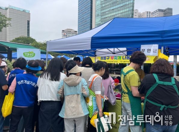 전남투데이 안철우 기자 | 전남 무안군은 지난 24일 성동구청 앞 광장에서 열린 ‘5월 무지개 나눔장터’에 참가해 농특산물 직거래 장터를 운영하고 온라인 쇼핑몰 ‘맛뜰무안몰’을 적극 홍보했다.